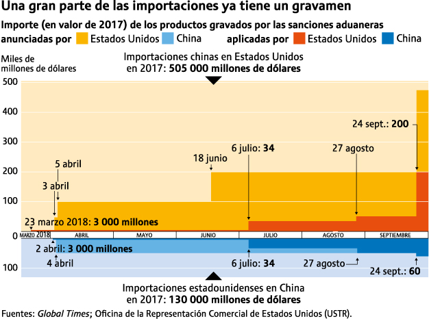 El folletín, que comenzó en primavera, continuó durante todo el verano y amenaza con durar mucho más allá del invierno. A veces resulta difícil distinguir entre los anuncios que generan revuelo y las medidas que realmente se han puesto en práctica. Por parte de Estados Unidos, se ha establecido una lista con 5.745 productos chinos (acero, aluminio, productos químicos, textiles, electrónica, etc.), por (...)