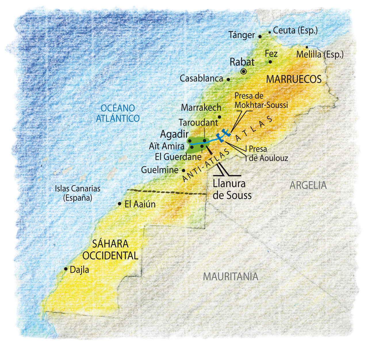 Desde que algunos grandes productores de frutas y verduras tempranas o cítricos, e industrias del sector cosmético extraen sus ganancias del valle de Souss, cada vez son más las campesinas bereberes condenadas a bregar como obreras agrícolas, en condiciones lamentables, para abastecer a Europa de tomates, naranjas y aceites cosméticos. Este modelo de desarrollo, que despoja a las familias rurales de sus magros recursos hídricos y forestales, tiene un coste social y ecológico grave.