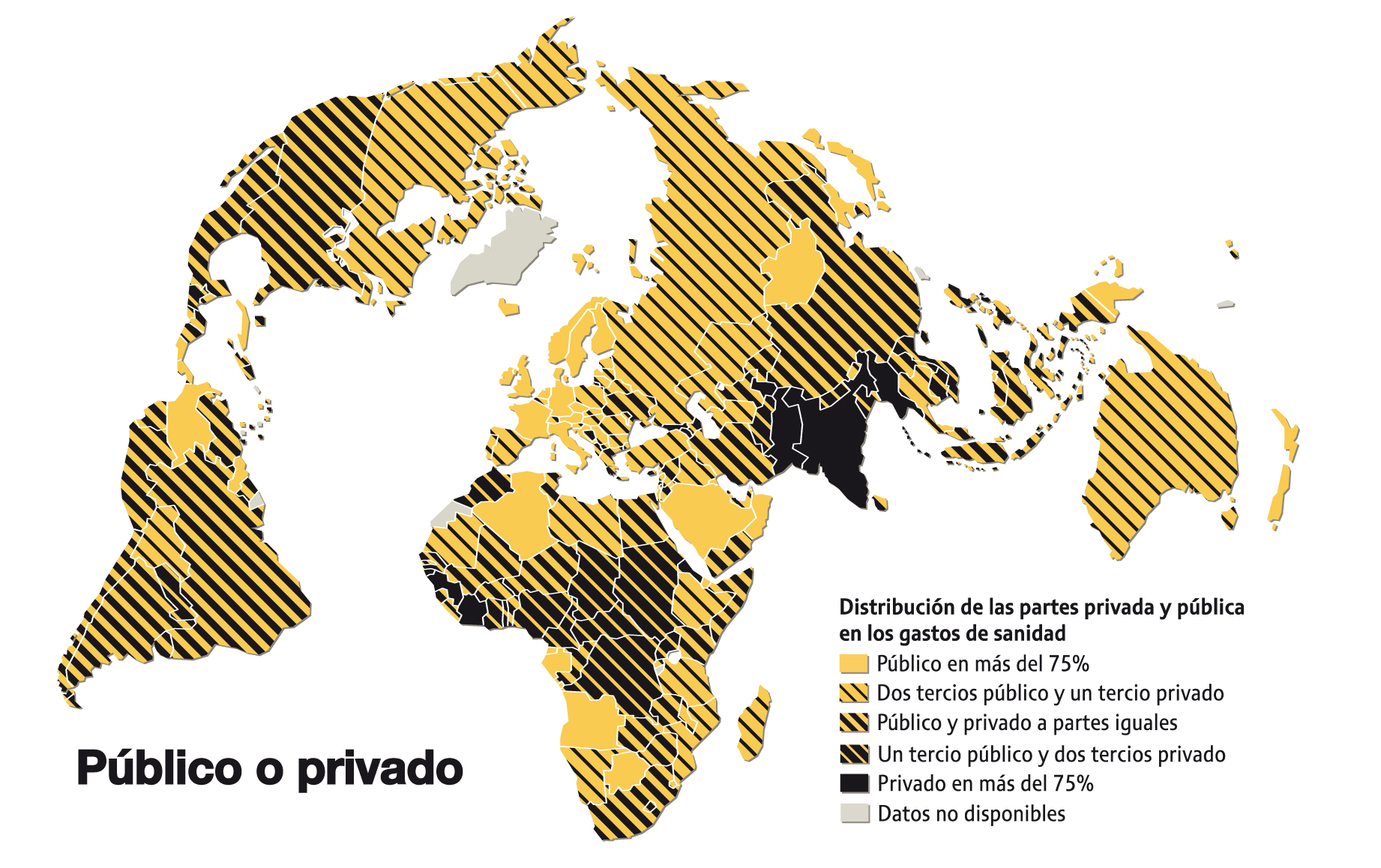 Mientras Estados Unidos, campeón de la gestión privada, o China, que la experimentó con la pasión del converso, tratan de limitar la lógica mercantil para establecer una cobertura universal, los países ricos se fijan como objetivo principal reducir el papel del Estado y los gastos mutualizados. Asombrosa contradicción de la historia: en el preciso momento en que el modelo estadounidense, que constituye el ejemplo más acabado de la gestión privada, prueba su ineficacia, el mercado sigue siendo la brújula (aun cuando aquí o allá se promueva el retorno del Estado).