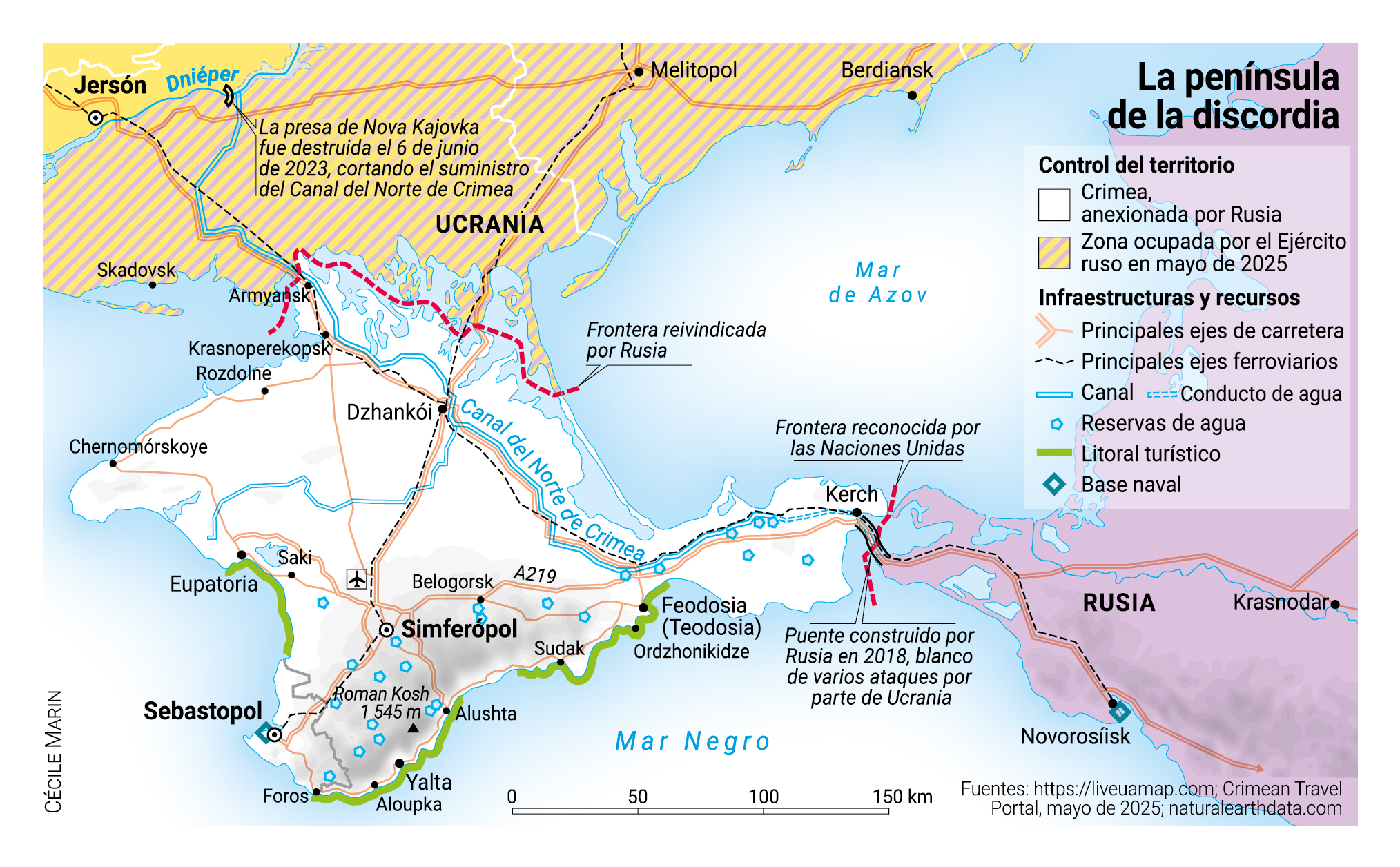 En el norte, los combates prosiguen. Pero, en esta jornada de efemérides, Antonina narra con voz conmovida el referéndum del 16 de marzo de 2014: “Acudimos como quien va a una fiesta, había banderas tricolores en todas las ventanas, la gente iba de lo más elegante… Después de votar, nos tomamos un café en la ciudad. La gente se ponía a hablar espontáneamente en la calle para intercambiar impresiones y congratularse”. El resultado del escrutinio —organizado a toda prisa en presencia de soldados sin insignias— reflejó una aspiración mayoritaria. Con una participación superior al 80%, los habitantes de Crimea votaron en más de un 90% a favor de la incorporación a Rusia. Mientras que para Kiev esta “reunificación” abrió una herida mal cicatrizada, para la mayoría de los crimeos lo que hizo fue cerrarla (léase el artículo “Una historia de referéndums”).