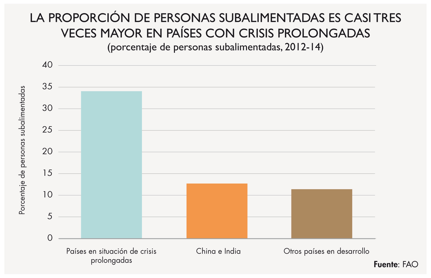 La mayoría de conflictos afecta principalmente a las zonas rurales y a los habitantes que viven en ellas. Ocurre, sobre todo, en el caso de los conflictos civiles, la forma más común de enfrentamiento armado en la actualidad. Las consecuencias de los enfrentamientos sobre la seguridad alimentaria y la nutrición son claras e incontestables. De hecho, los conflictos son la causa principal de la seguridad alimentaria y la malnutrición. Los efectos sobre el desarrollo de las personas son inmediatos pero se mantienen a largo plazo: la malnutrición suele afectar con más fuerza a los niños, cuyas capacidades físicas y mentales pueden quedar dañadas de por vida.