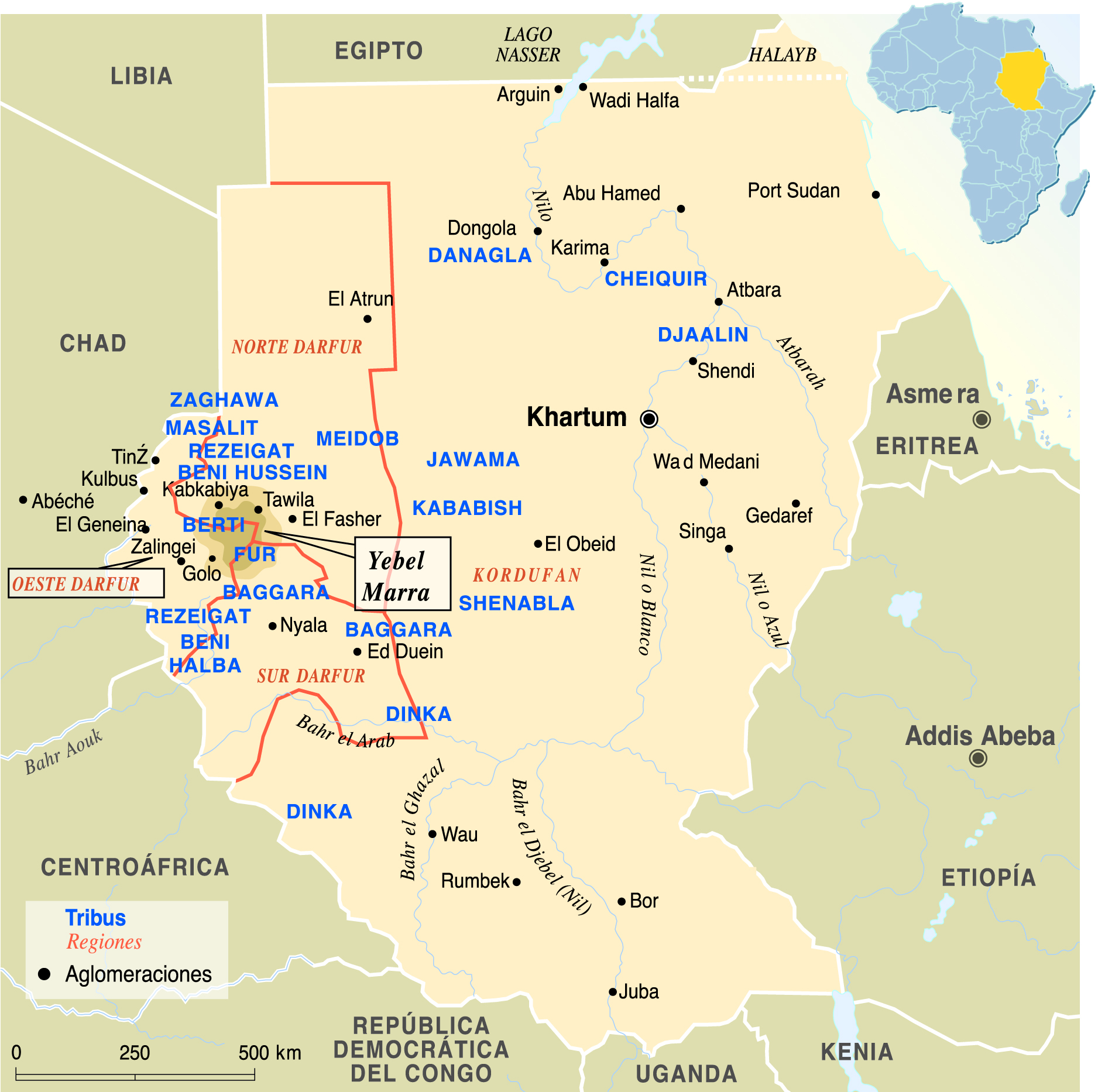 La sangrienta guerra que se libra en los tres Estados de Darfur, al oeste de Sudán, desde febrero de 2003, ha provocado una de las catástrofes humanitarias más graves desde comienzos de siglo: un total de 110.000 refugiados en Chad, 700.000 desplazados en el interior del país y más de 10.000 muertos. Todos los testigos relatan las mismas escenas de desolación y saqueos: ataques de madrugada, pueblos incendiados, carreteras cortadas, robo de ganado y distritos vedados a las organizaciones humanitarias y a los extranjeros. En pocos meses, los conflictos tribales que desde hace veinte años caracterizan la actualidad de Darfur se han transformado en una guerra civil mortífera.