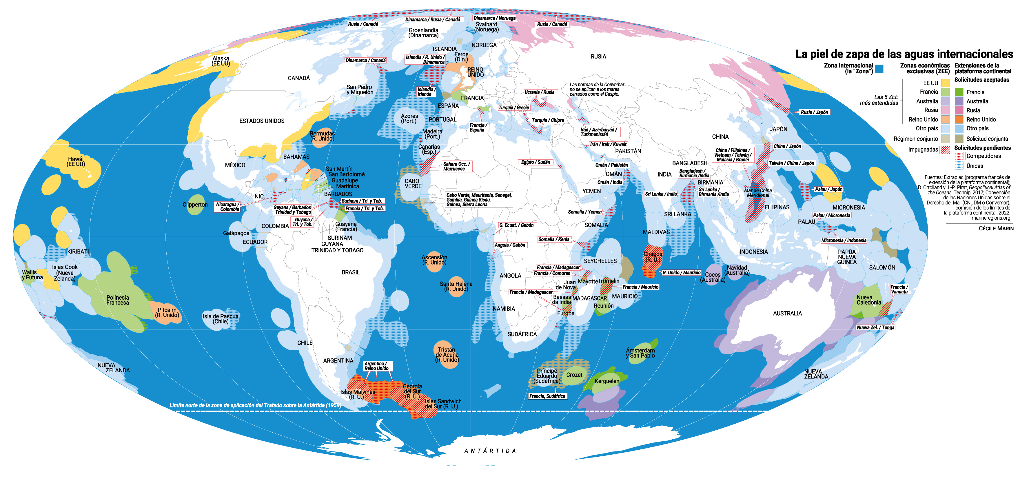 En un paisaje diplomático disgregado y en que las instituciones internacionales a menudo se caracterizan por su impotencia, subsiste un monumento del derecho internacional que en 2022 celebra su cuarenta aniversario: la Convención de las Naciones Unidas sobre el Derecho del Mar (Convemar). Aprobada en bloque en una sola votación el 30 de abril de 1982, se abrió a la firma el 10 de diciembre del mismo año en la ciudad jamaicana de Montego Bay. Sus trescientos veinte artículos y nueve anexos representan una proeza diplomática. El singapurense Tommy Koh, presidente de la III Conferencia de las Naciones Unidas sobre el Derecho del Mar, que se extendió de 1973 a 1982, la calificó de “Constitución de los océanos”; el por entonces secretario general de la Organización de las Naciones Unidas (ONU) Javier Pérez de Cuéllar la saludó como “la herramienta jurídica internacional más importante de nuestro siglo”. Cuarenta años después, (...)