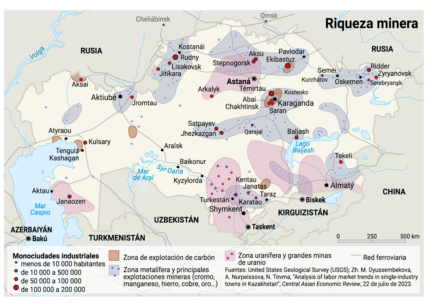 La alarma suena a intervalos regulares en la nave de los transformadores. Se le añade el ensordecedor silbido del oxígeno insuflado en grandes hornos llenos de metal líquido. “Estas máquinas funcionan día y noche”, afirma Erbal Ismaílov, uno de los directivos de la fábrica. Cubas de ocho metros de altura se desplazan infatigablemente por una vía férrea para verter regularmente una resplandeciente colada de metal fundido. Algunos obreros se afanan en este espacio de dimensiones inhumanas entre nubes de humo grises o amarillas y un olor acre a pintura industrial. Aquí se restaura y se repara. “Acabamos de sustituir 50.000 m² de cubierta”, señala Ismaílov. El complejo metalúrgico de Temirtáu, adquirido en 2023 por Qarmet a ArcelorMittal, no ha cambiado gran cosa desde los tiempos en que era una (...)
