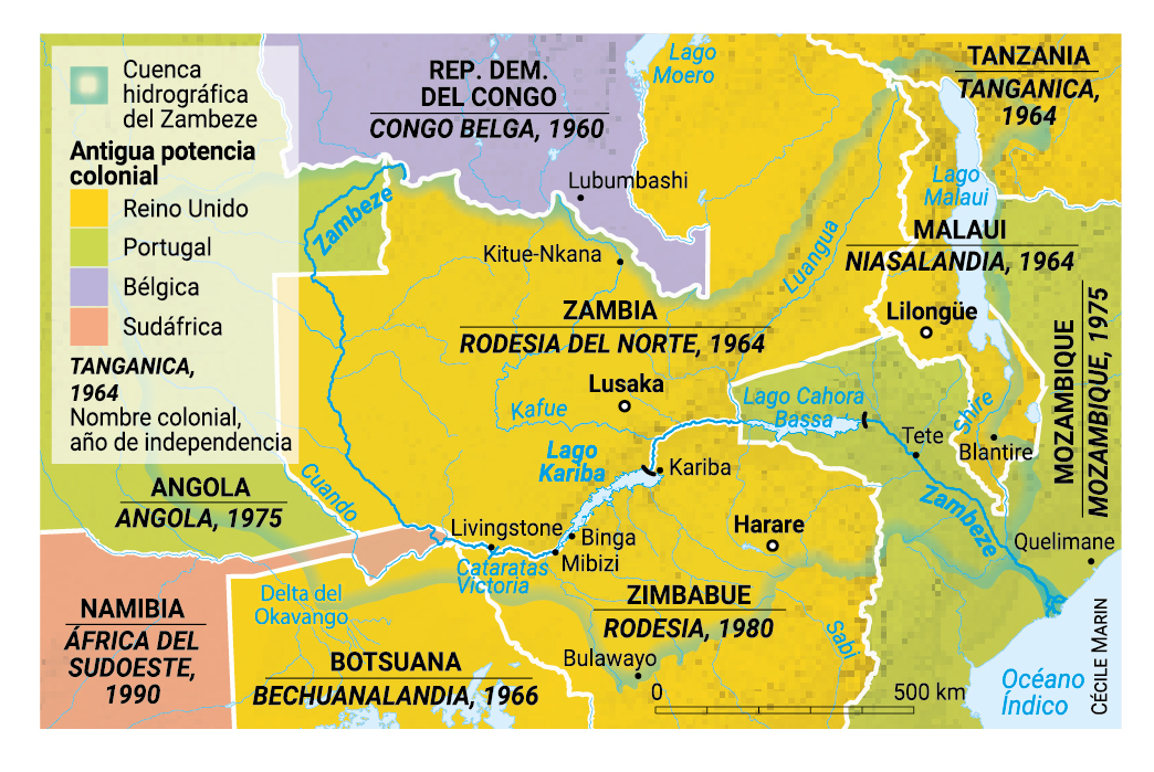 En la década de 1950, la Federación de las Rodesias y de Niasalandia, en el sudeste africano, construyó una presa hidroeléctrica en el río Zambeze. Inaugurada en 1960 en presencia de la reina Isabel II, la obra —diseñada por el ingeniero francés André Coyné— dio nacimiento a un lago de más de 5.000 kilómetros cuadrados, cuatro veces la superficie de la ciudad de Nueva York. El propósito del proyecto, en el que participaron ingenieros europeos, capitales internacionales y obreros africanos, era construir el mayor embalse de la época, y transformó un valle habitado en un recurso hídrico estratégico. En la actualidad, con una potencia total de 2.000 megavatios (MW), la presa alimenta dos centrales subterráneas, cada una de las cuales proporciona dos tercios de la electricidad consumida en los países rivereños, Zambia al norte y Zimbabue al sur.