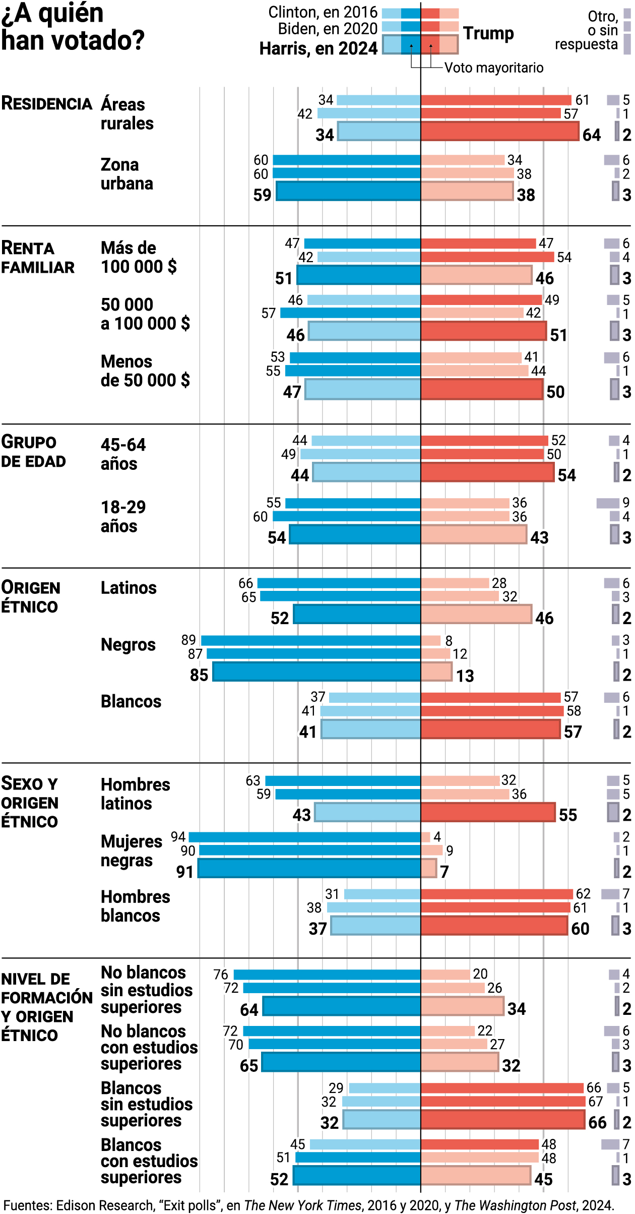¿Pero cómo ha podido ser elegido presidente semejante personaje? Si queremos empezar a entender la victoria de Donald Trump, hay que hacerse cargo de lo que esta refleja, a saber: una polarización de la vida política estadounidense que no ha dejado de hacerse más profunda en los últimos treinta años. En 2014, la proporción de republicanos que veían en los demócratas una “amenaza para el bienestar del país” era más del doble que en 1994: pasó del 17% al 36%. Misma evolución experimentaron los demócratas, de los cuales el 16% consideraban a los republicanos como una amenaza en 1994, frente al 27% veinte años después. Ese fue el trasfondo de las elecciones de 2016, en las que Trump salió victorioso por un reducido margen.
